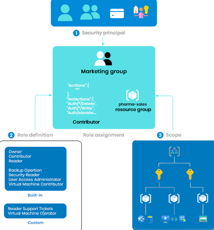 Another important tool for assigning access to resources in Azure is RBAC. RBAC allows you to assign specific roles and permissions to users or groups, based on their job function or responsibilities within the company. For example, you might assign a user the "Virtual Machine Contributor" role, which allows them to create and manage virtual machines, but not access other resources.